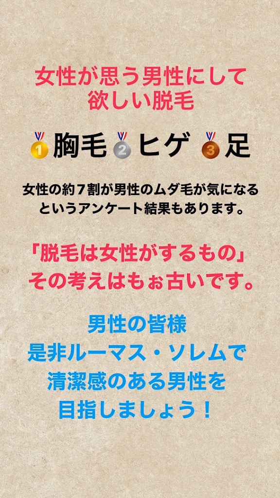みなさまに、脱毛サロンルーマスソレムについて色々なメリットを知ってもらいたくてブログを書かせて頂きます⭐︎