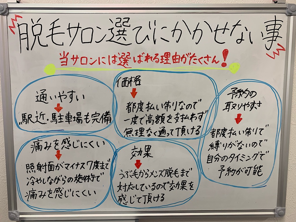 フランクなスタッフの明るい接客の中、楽しく脱毛はいかがでしょうか?